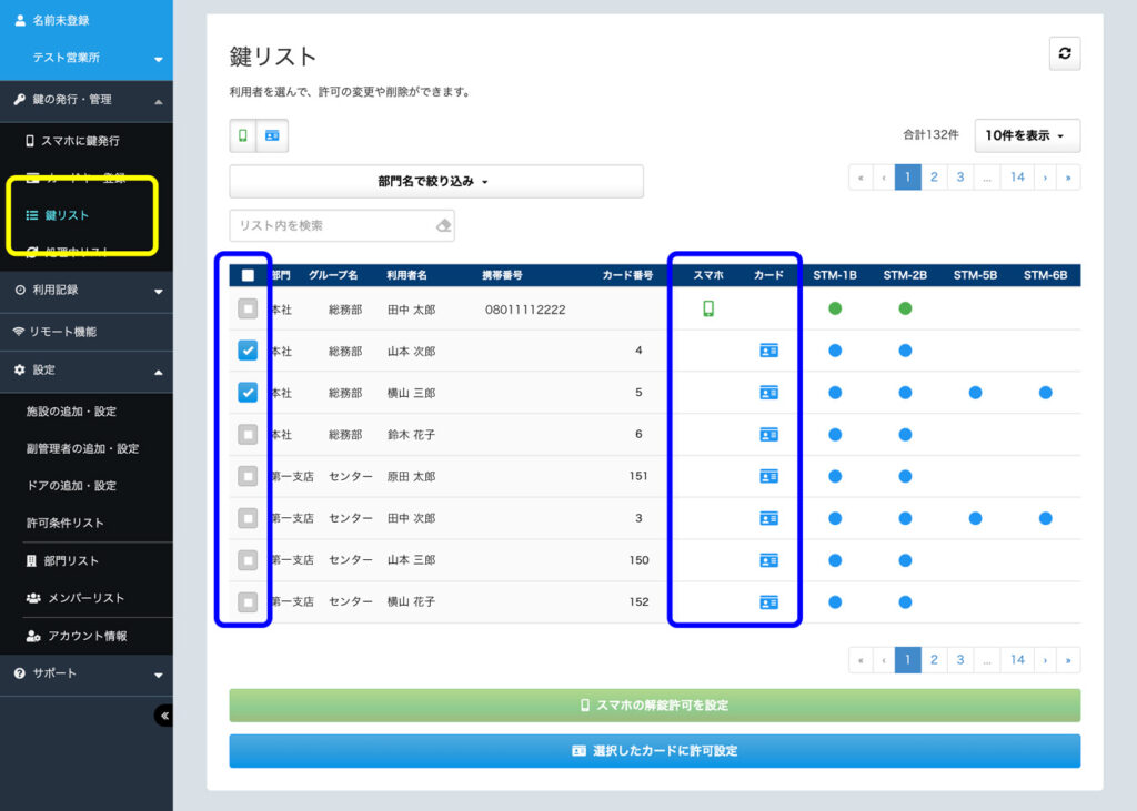 - 利用者ごとに、許可したスマホやカードキーが表示されます。