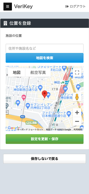 メニュー「設定」>「位置を登録」