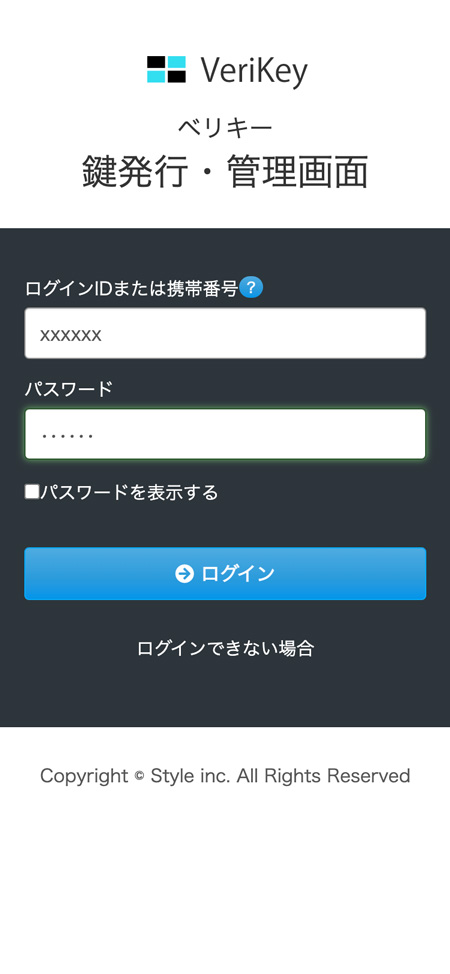 1. オーナー登録した方の携帯番号+パスワードでログインしてください。